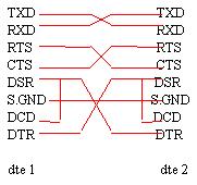 Styki złącza RS232 w komputerze (modemie ) jak również w urządzeniu peryferyjnym są celowo oznaczone w inny sposób , aby można było łączyć je ze sobą. Linia , którą urządzenie peryferyjne wysyła znaki , musi być traktowana przez modem jako linia odbiorcza . Trudności powstają gdy należy łączyć ze sobą dwa urządzenia bez modemu . Niektóre linie należy wtedy krzyżować. Dwa komputery można wtedy łączyć za pomocą kabla z dwoma złączami , w których zamieniono miejscami odpowiednie linie . Taki kabel nosi nazwę modemu zerowego.